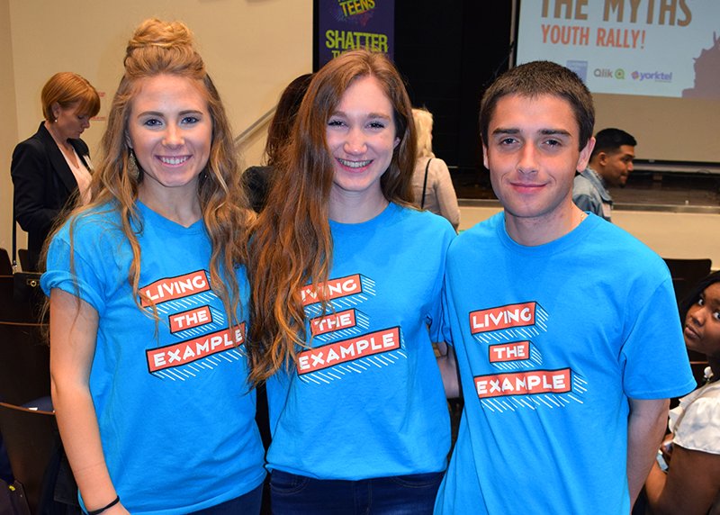 What is a ‘youth ambassador’? They are volunteers within a school that create their own special activities to highlight either the effects of drug abuse or examples of living a drug free and happy life. The Ichabod youth ambassadors Megan, Meredith and Alex described their projects which was a part of a ‘Shattering the Myths’ week held at their school with help from our facilitators. Their ideas included a ‘dream wall’ where students wrote down their future goals, an activity in phys-ed class where they would breathe through a straw while exercising to simulate the effects of smoking on the lungs, and a trivia contest where students answered questions about substance abuse and won a ‘Living The Example’ t-shirt as a prize for correct answers